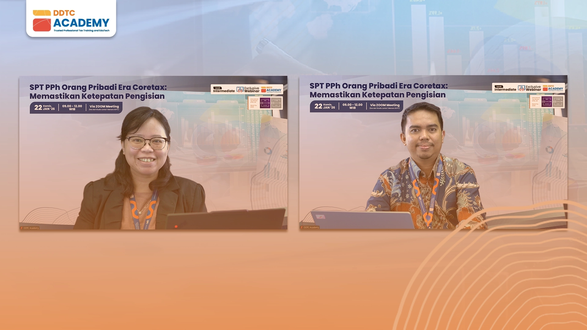 DDTC Academy telah menggelar exclusive webinar bertajuk SPT PPh Orang Pribadi Era Coretax: Memastikan Ketepatan Pengisian. Disiarkan langsung dari studio lantai 1 Menara DDTC, acara berlangsung pukul 09.00-12.00 WIB pada hari ini, Kamis (22/1/2026).