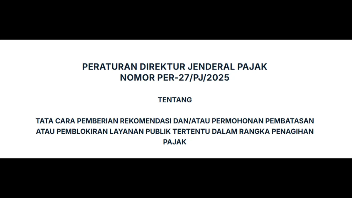 JAKARTA, DDTCNews – Ditjen Pajak (DJP) menerbitkan peraturan terbaru, yaitu Peraturan Dirjen Pajak No. PER-27/PJ/2025, yang mengatur pemberian rekomendasi dan/atau permohonan pembatasan atau pemblokiran layanan publik tertentu dalam rangka penagihan pajak