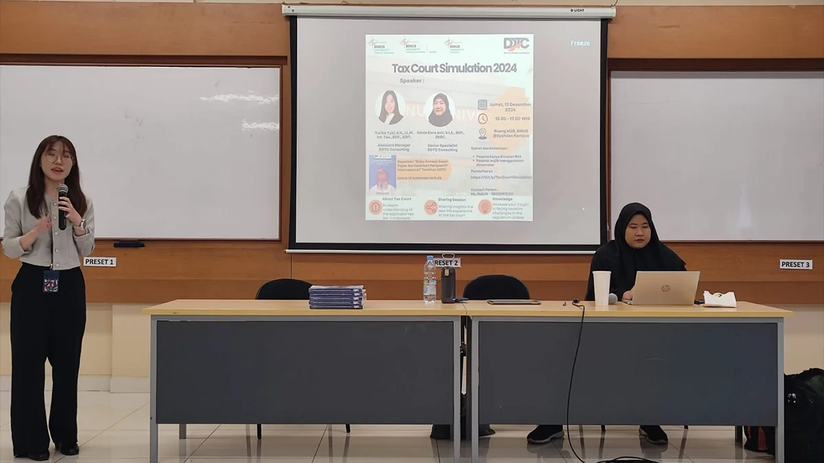 Hal tersebut disampaikan Senior Specialist DDTC Consulting Kania Dara Asti dan Senior Specialist DDTC Consulting Dwina Karina dalam acara bertajuk Tax Court Simulation 2024 yang digelar oleh Binus School of Accounting bekerja sama dengan DDTC pada hari ini, Jumat (13/12/2024).