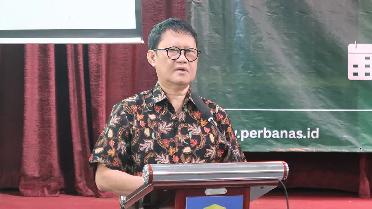 <p>Wakil Rektor II Perbanas Institute Haryono Umar saat memberikan sambutan dalam&nbsp;seminar perpajakan nasional bertajuk <em>Outlook Arah Kebijakan dan Administrasi Perpajakan Indonesia Tahun 2026</em> yang diselenggarakan pada hari ini, Rabu (25/2/2026).&nbsp;&nbsp;</p>