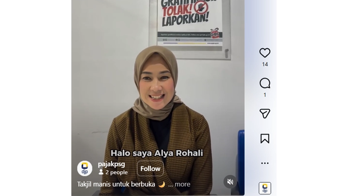 JAKARTA, DDTCNews - Aktris sekaligus presenter Alya Rohali turut mengingatkan wajib pajak agar segera menyampaikan Surat Pemberitahuan (SPT) Tahunan 2025 sebelum melakukan perjalanan mudik Lebaran.