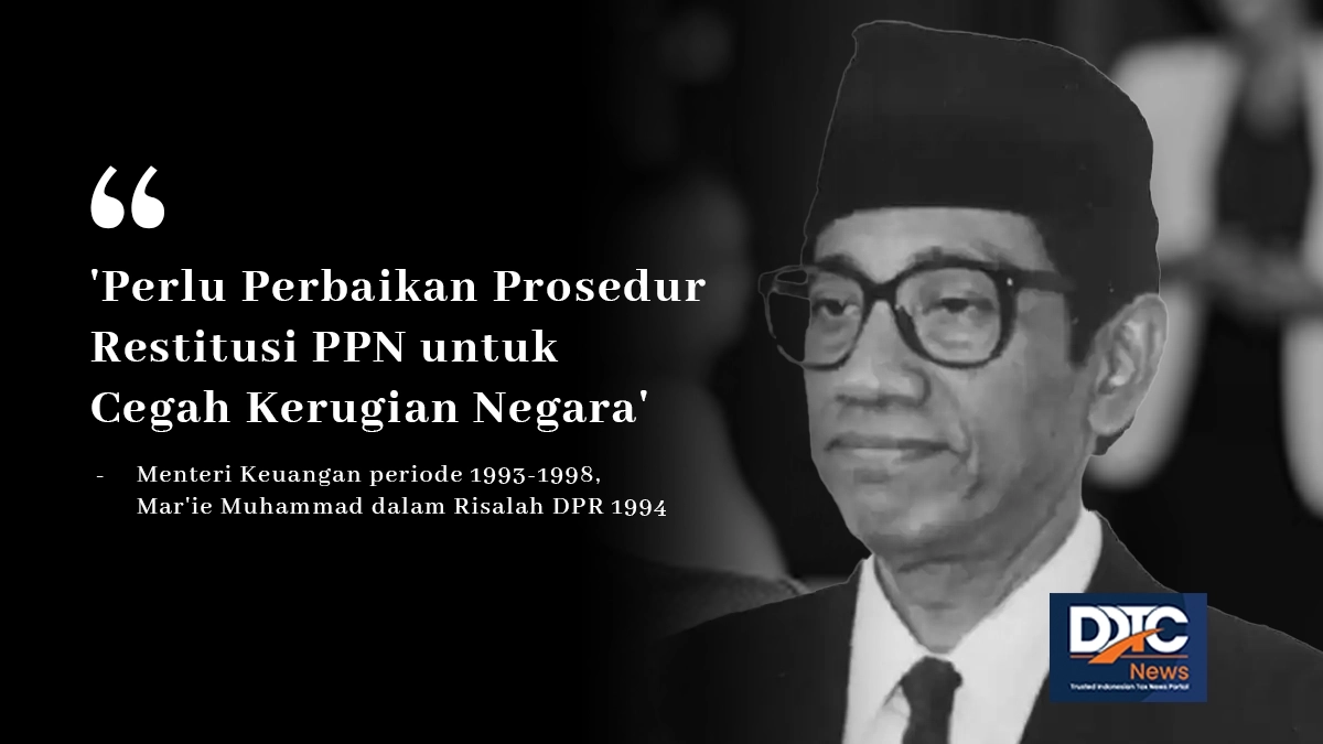 Dalam Risalah DPR 1994, Menteri Keuangan saat itu, Mar'ie Muhammad, menyampaikan secara tegas bahwa perlu dilakukan perbaikan tentang prosedur dan administrasi restitusi PPN melalui revisi UU PPN. Langkah ini mengantisipasi kemungkinan terjadinya manipulasi restitusi PPN yang merugikan negara.