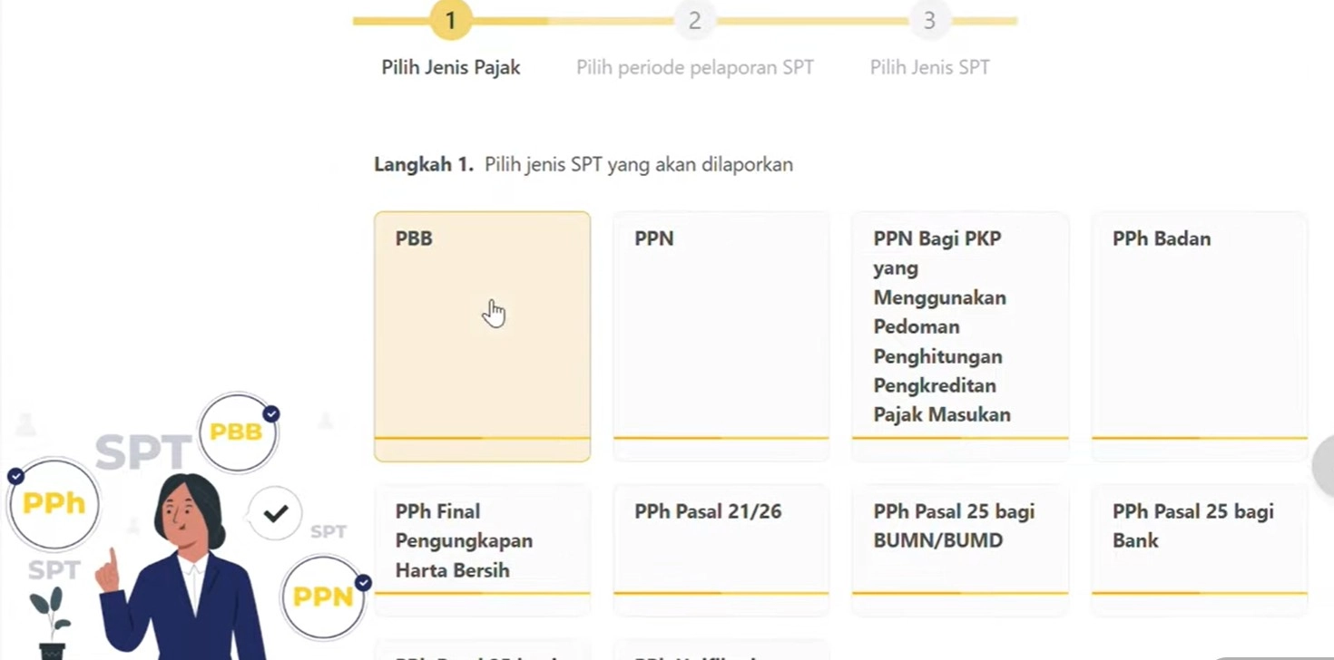 Ketiga, pilih 'Buat Konsep SPT', lalu Bapak pilih jenis SPT yang akan dilaporkan, yaitu PBB.