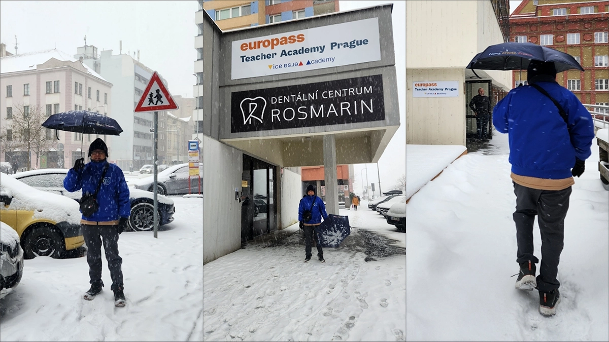 Hujan salju! Mana lebat lagi! Wah, menantang pokoknya. Ternyata di Eropa, winter kali ini kondisinya terburuk dalam beberapa tahun terakhir. Di Belanda, bahkan bandara sempat lumpuh. Kalau di Ceko, suhunya kemarin feels like minus 12 derajat Celcius. Warlok [warga lokal] pada bilang ini musim dingin yang terparah.